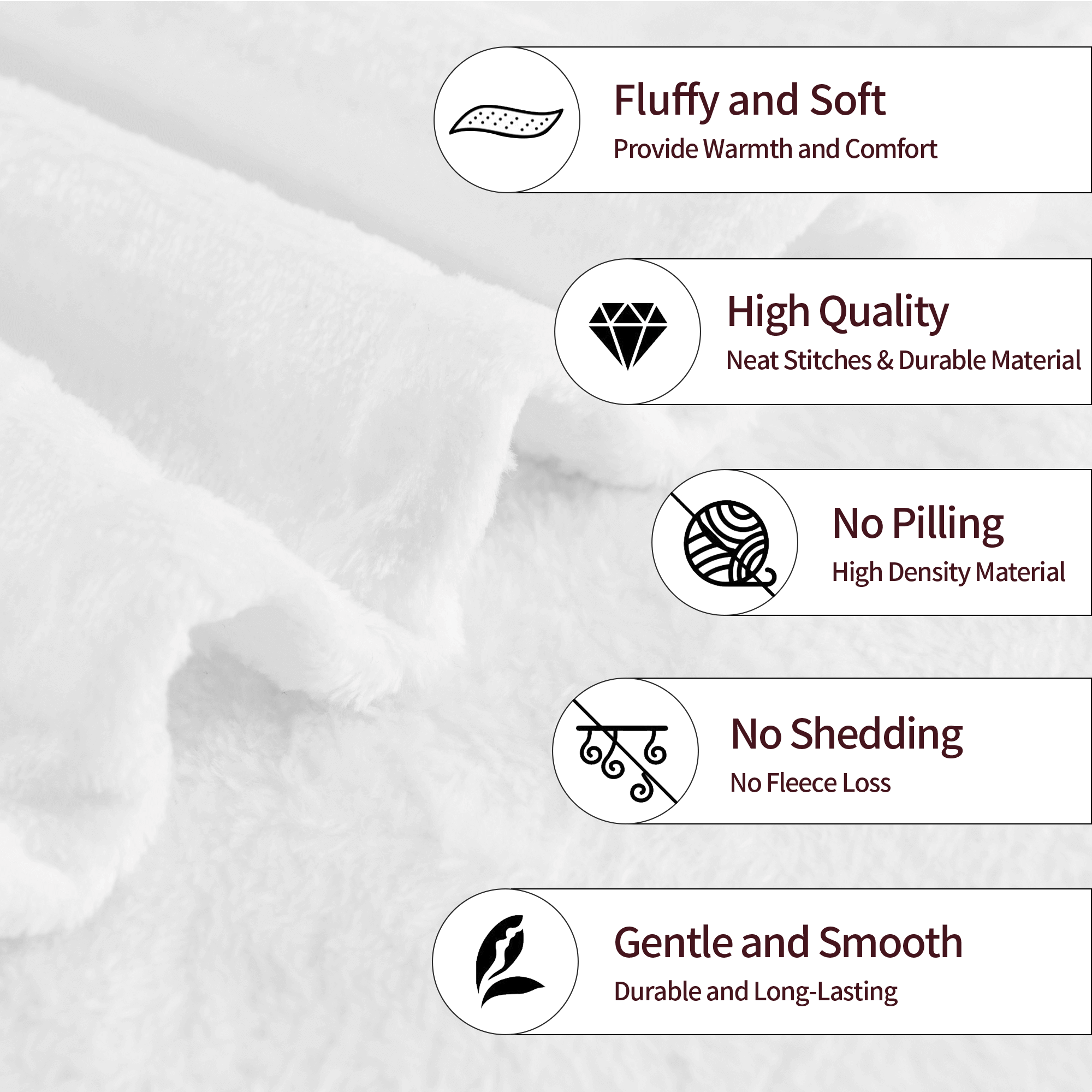 Lightweight and durable, folds compactly. Super soft with an excellent touch. Fully resists shrinkage and wrinkles. Our blanket has a velvety fuzzy feel, is soft to the touch, anti-pilling, wrinkle-resistant, hypoallergenic, and does not shed. Perfect for people with allergies and asthma!